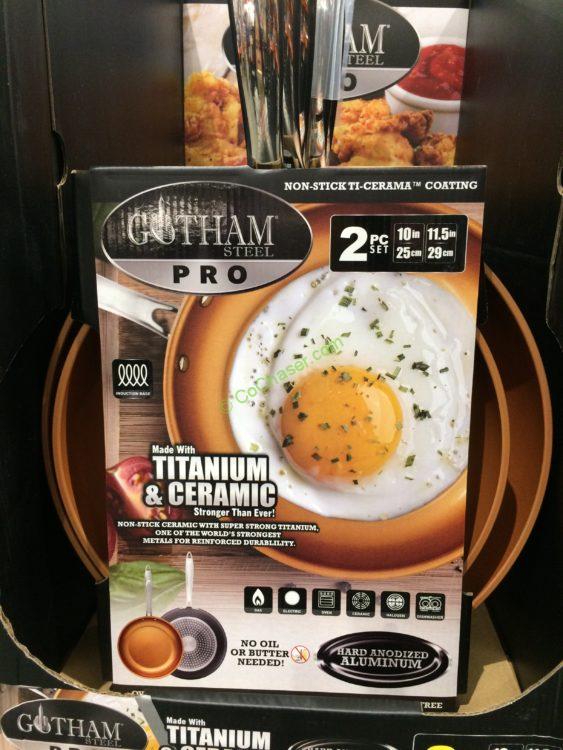 An exclusive set from the gotham steel pro line the gotham steel 2 piece fry pans feature a coating of super slick ceramic fused with durable titanium to ensure nothing sticks to the pan.